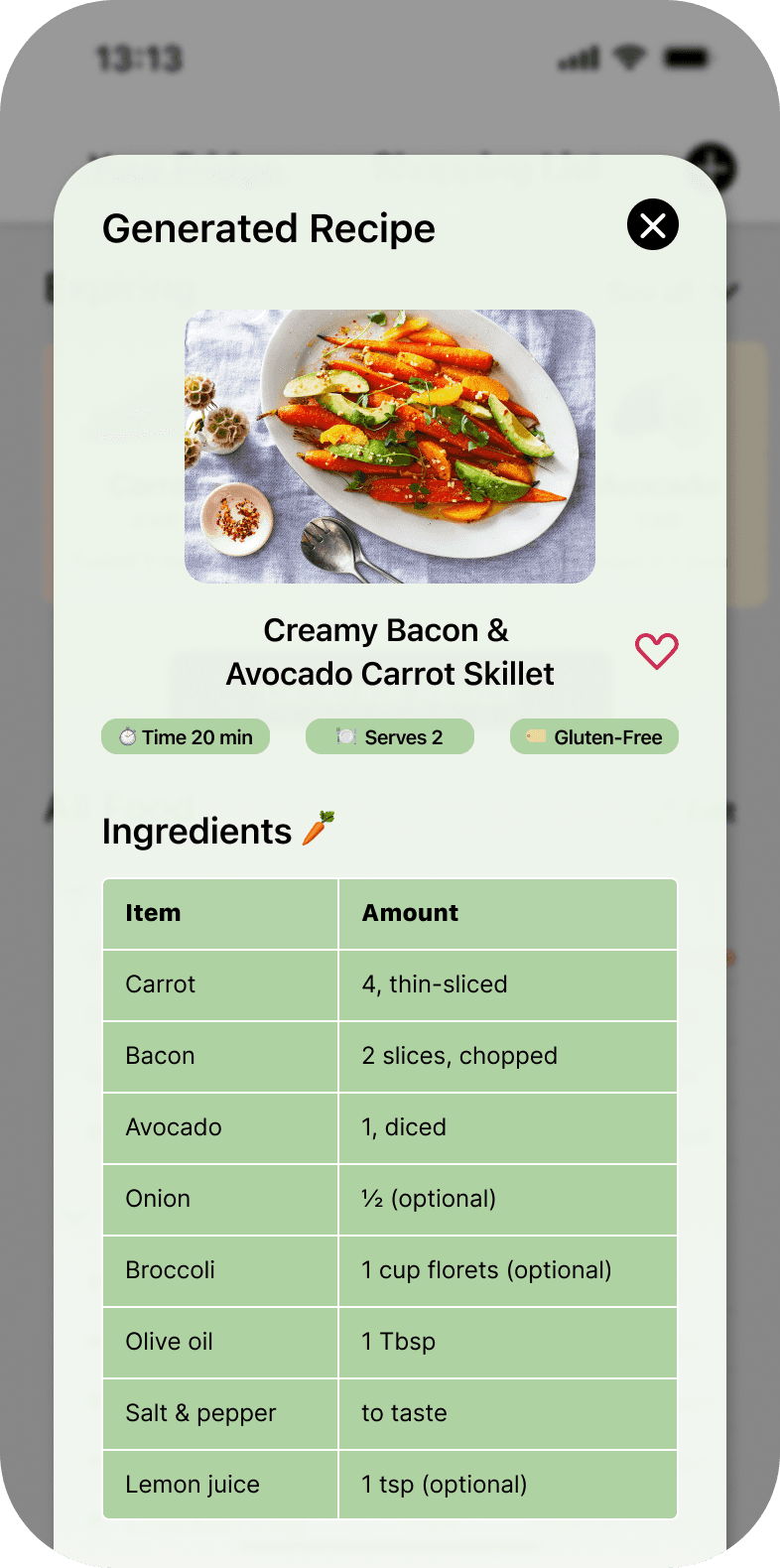 AR powered recipe assistant that turns fridge inventory into sustainable meals